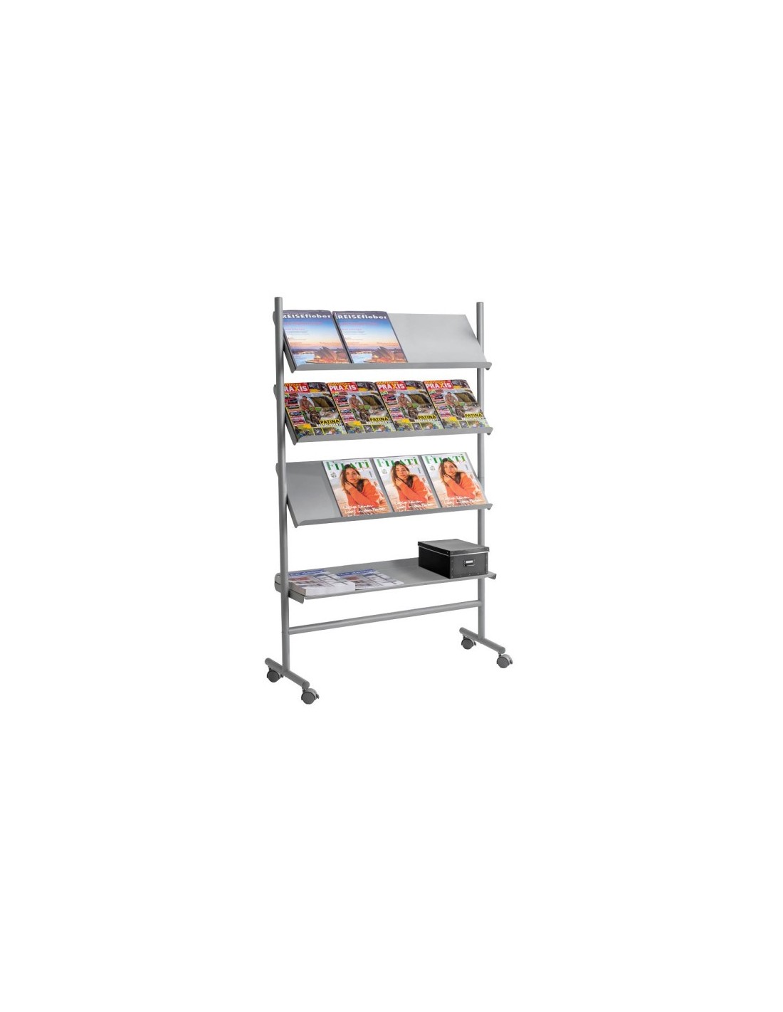 Das Prospektregal Praktica 3464 ist ein hochwertiger Prospektständer in alusilber. Mit einer Breite von 92cm, einer Höhe von 155cm und einer Tiefe von 35cm bietet es ausreichend Platz für Ihre Prospektpräsentationen.