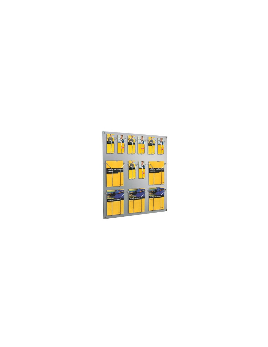 In dieser Prospektwand präsentieren Sie Ihre Prospekte bestens. Denn für Ihre Kunden und Interessenten sind Ihre Werbeunterlagen vollständig sichtbar und laden zur Mitnahme geradezu ein!