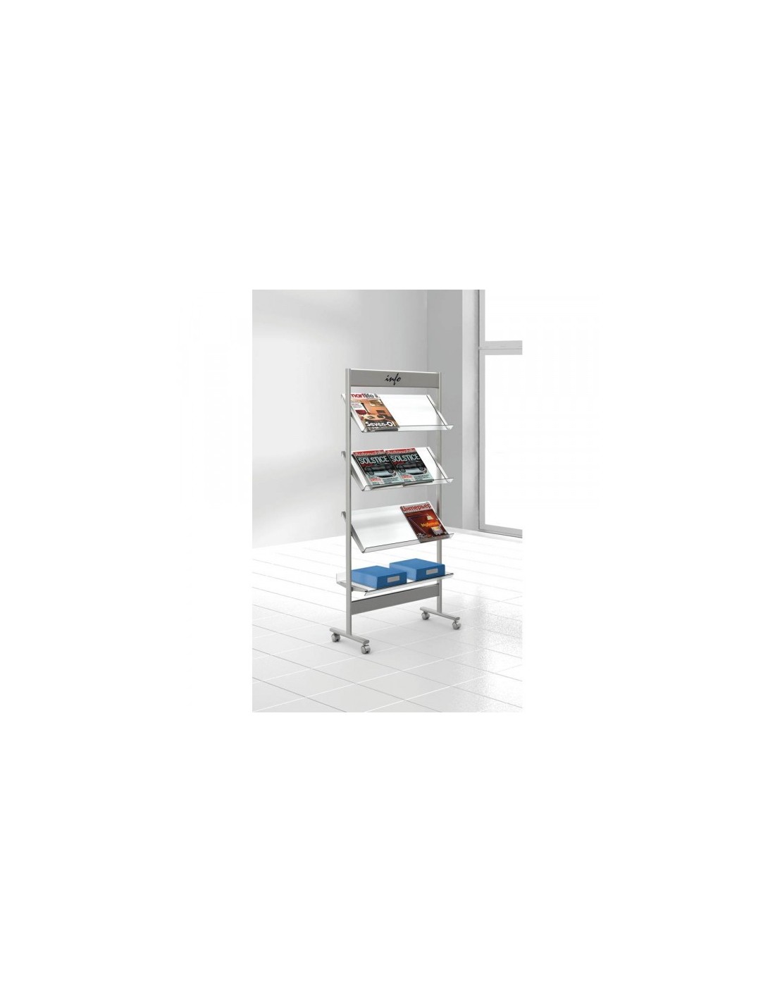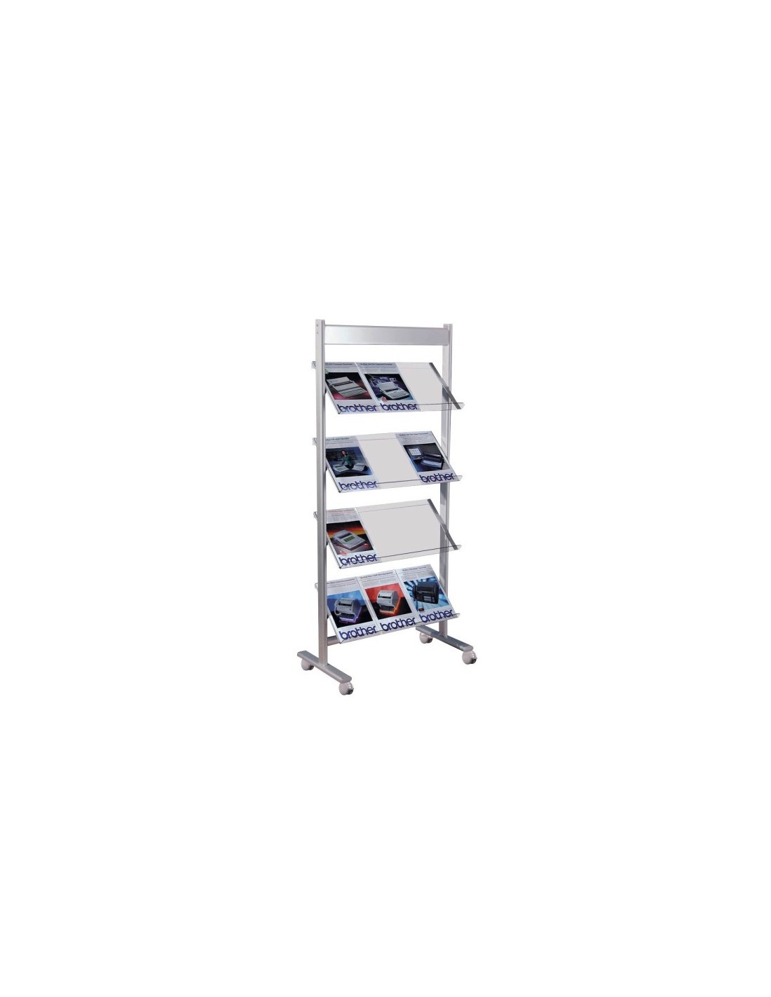 Wolfstahl Prospektregal alusilber mit Rollen für 12 x DIN A4