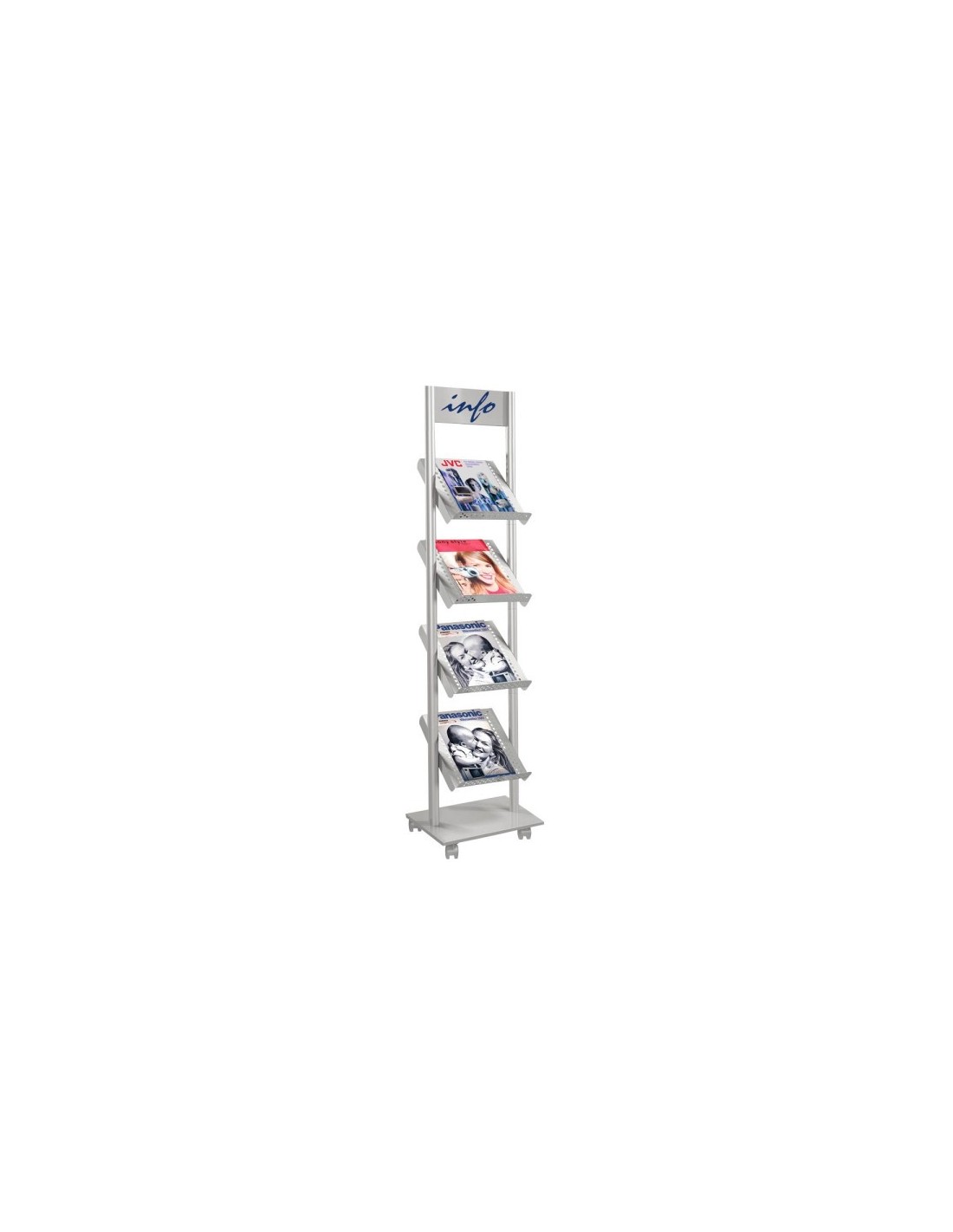 Wolfstahl Prospektregal Rico alusilber mit Rollen für 4 A4 Formate