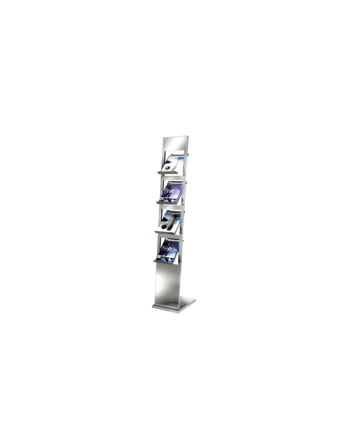 Der Prospektständer Primus hat 4 Fächer, die jeweils eine Füllhöhe von 4 cm haben und genug Platz für DIN A4 Formate bieten. Mit insgesamt 4 Ebenen haben Sie die Möglichkeit, verschiedene Informationen in einer übersichtlichen Struktur zu präsentieren.