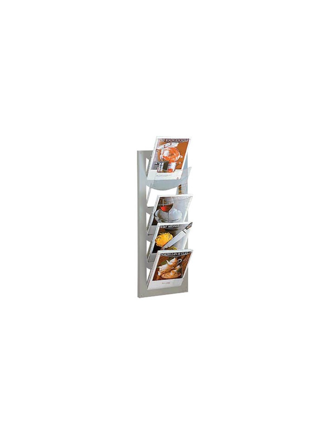 Der Wandprospekthalter ist aus hochwertigem Stahl gefertigt und in der Farbe silber gehalten. Mit einer Höhe von 90cm, einer Breite von 30cm und einer Tiefe von 17cm passt er perfekt an jede Wand.