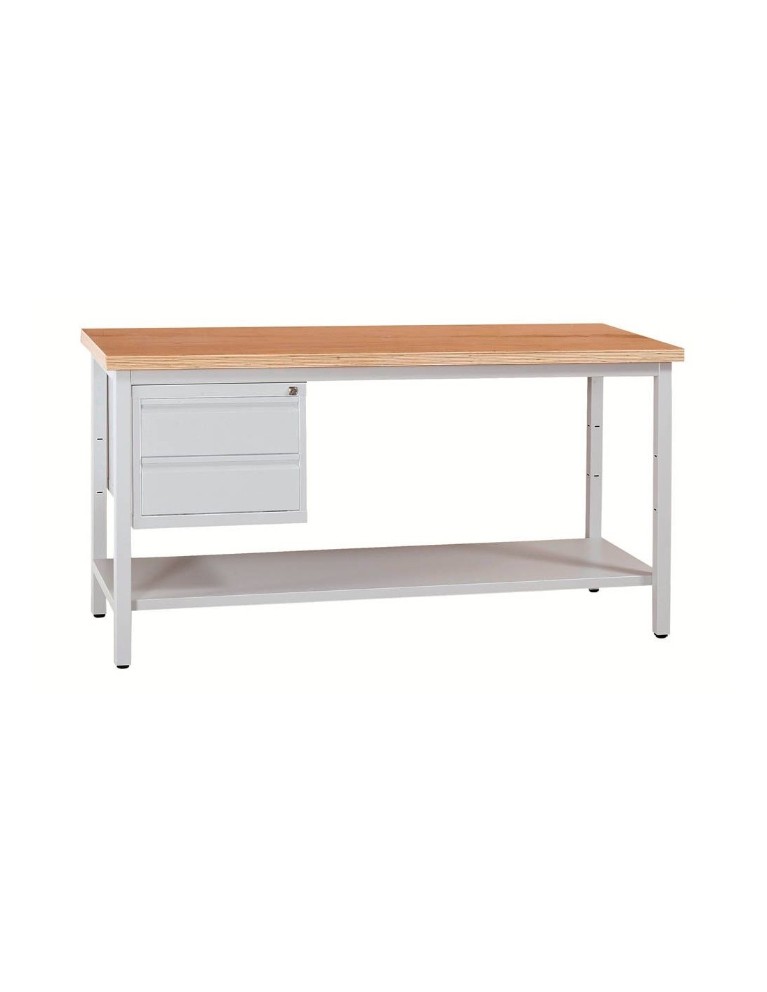 Wolfstahl Werkbank stahl mit 2 Schubladen 160x60x84cm lichtgrau Tischplatte 30mm buche