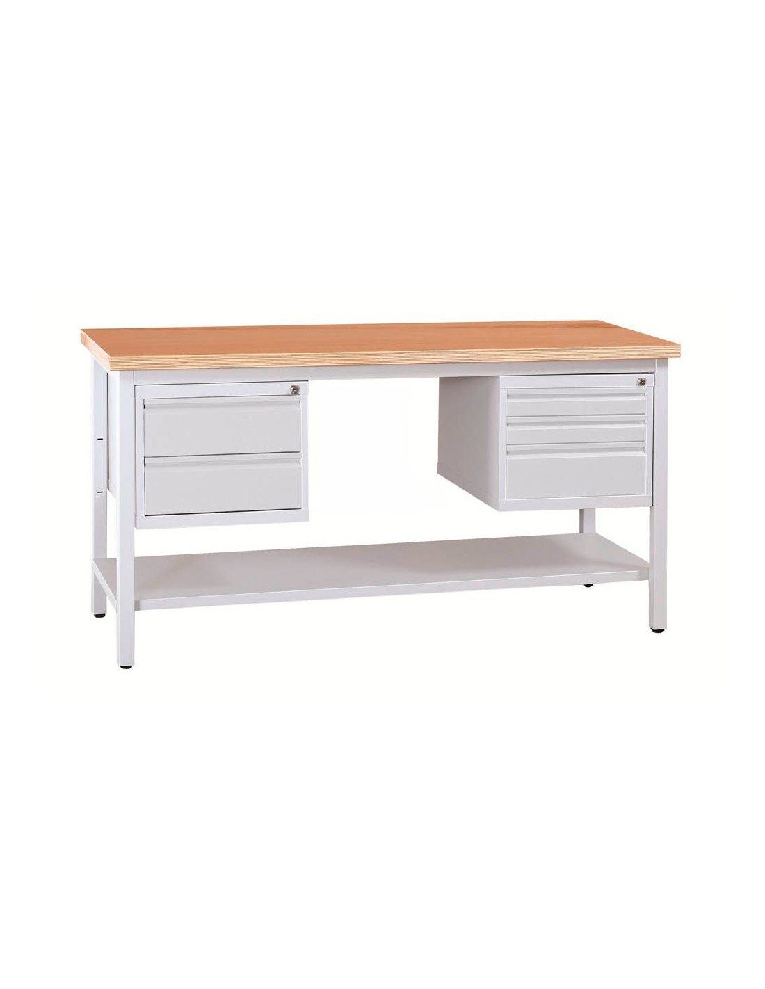 Wolfstahl Werkbank stahl mit 5 Schubladen 120x60x84cm lichtgrau Tischplatte 30mm buche