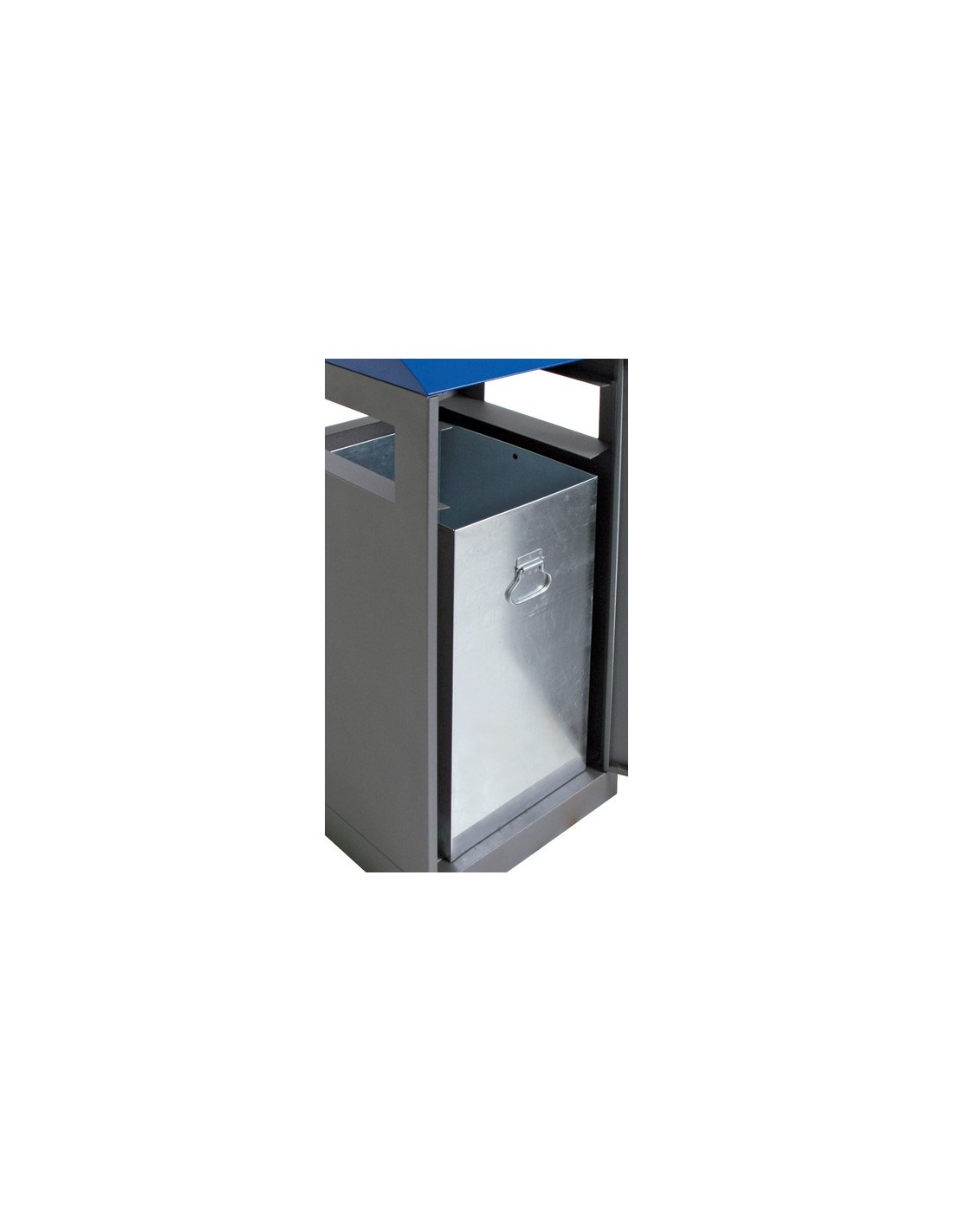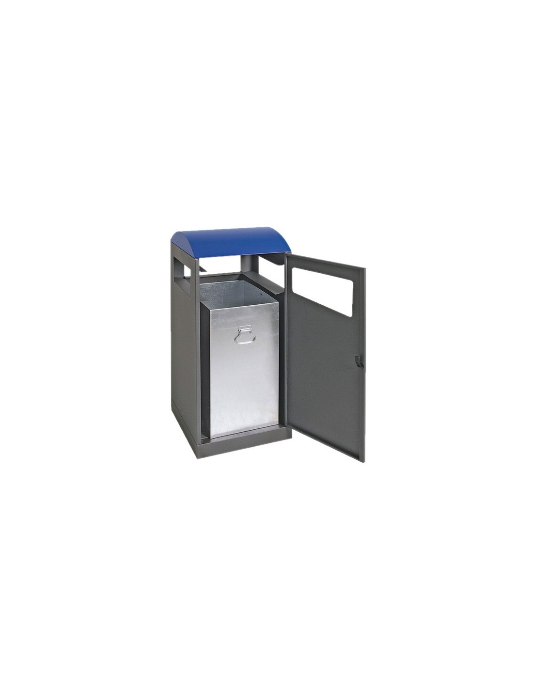Der Innenbehälter aus verzinktem Stahlblech sorgt für eine optimale Abfallaufnahme, während das Fassungsvermögen von 90 Litern ausreichend Platz für Abfälle bietet. Durch die frontseitig eingelassene und per Vierkantschloss verschliessbare Flügeltüre kann der Innenbehälter problemlos entnommen werden.