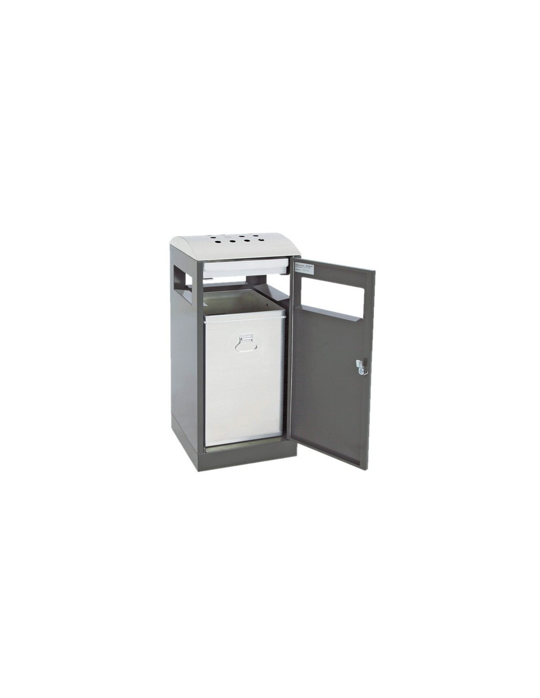 Diese Abfalltrennung A³-AA ist die ideale Lösung für die Aussenaufstellung und kombiniert eine Abfall- und Ascherfunktion in einem praktischen Design. Mit einem gelochten Kopfelement aus gebürstetem Edelstahl für den Einwurf von Zigarettenabfällen ist dieser Sammler nicht nur funktional, sondern auch ästhetisch ansprechend.