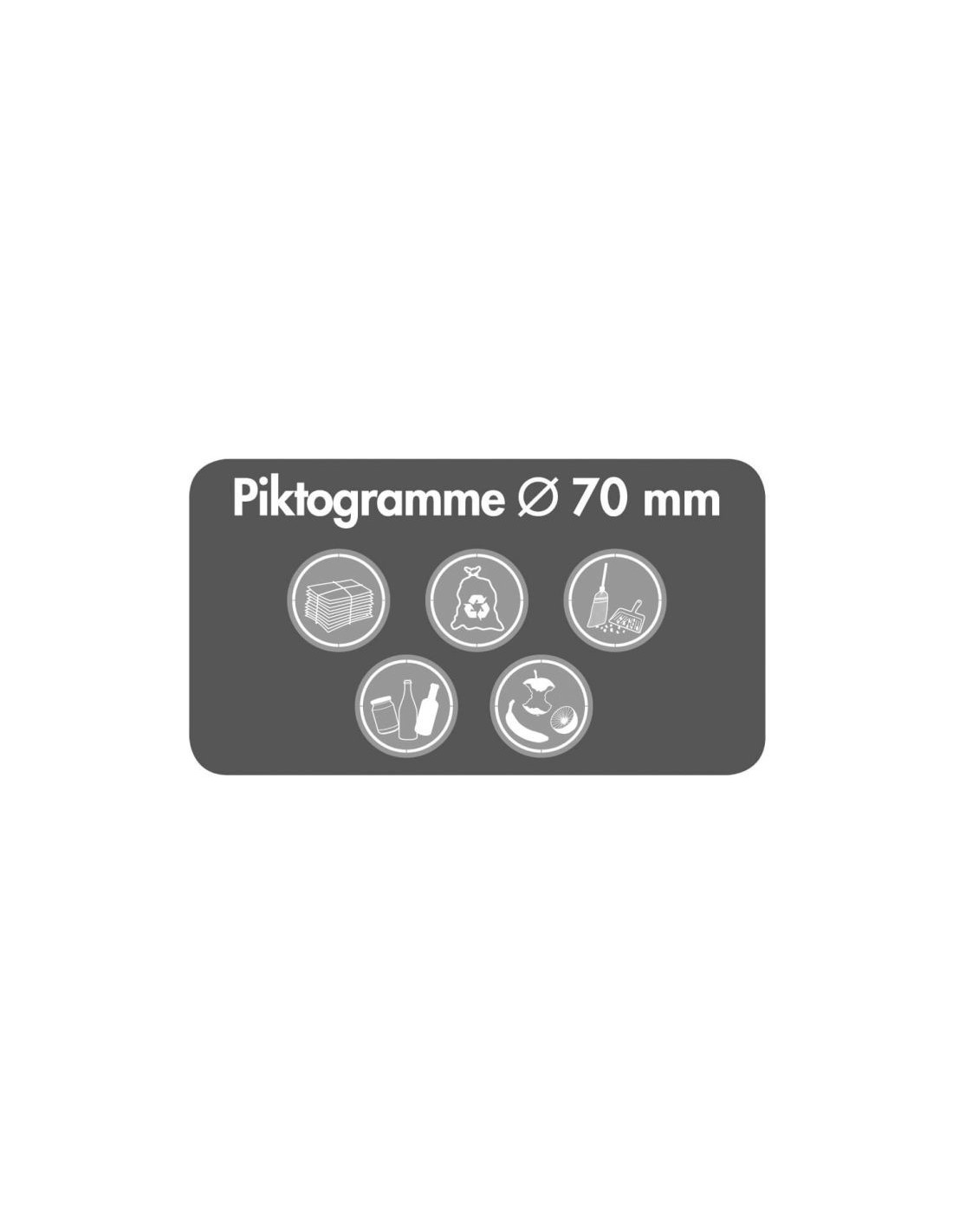 Dieses Piktogramm-Set besteht aus 5 selbstklebenden Kennzeichnungsaufklebern, die auf transparenter Folie mit Symbolen für Papier, "gelber Sack-Abfälle", Restmüll, Glas und Bio-Abfall versehen sind. Mit einem Durchmesser von 70 mm und einer weissen Farbgebung sind sie gut sichtbar und leicht zu erkennen.