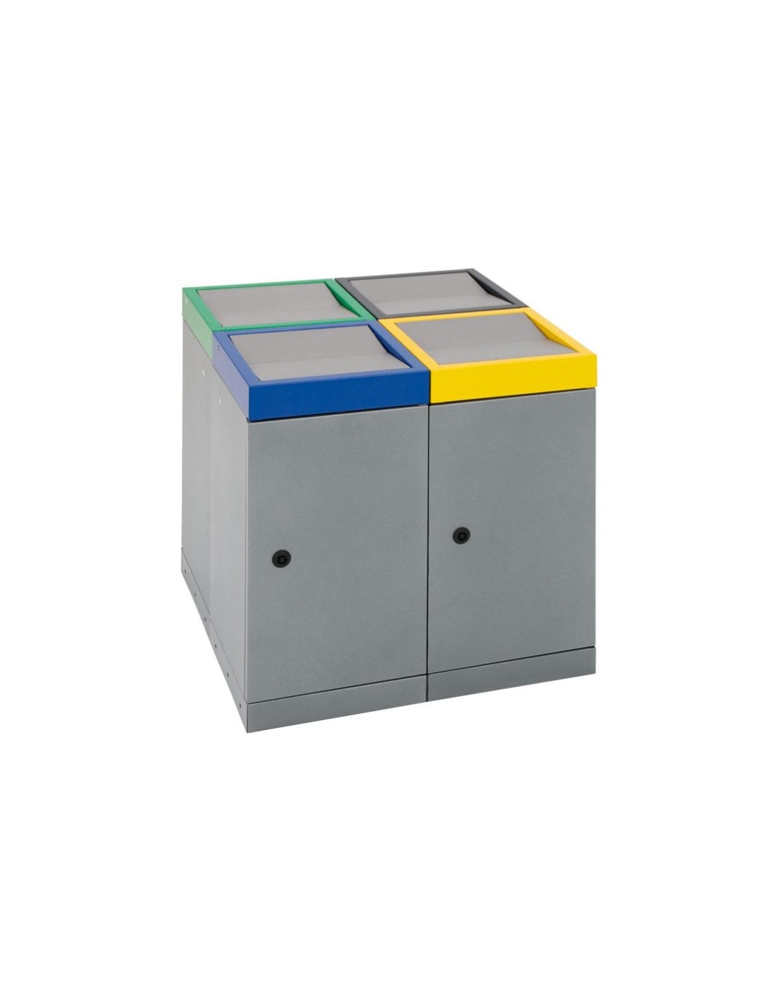 Abfalltrennung ProTec-Plus, 4-fach Abfall Insel, graualu-struktur/6024, 1003, 5010, 7016, verz. Innenbehälter, 4x30 Liter