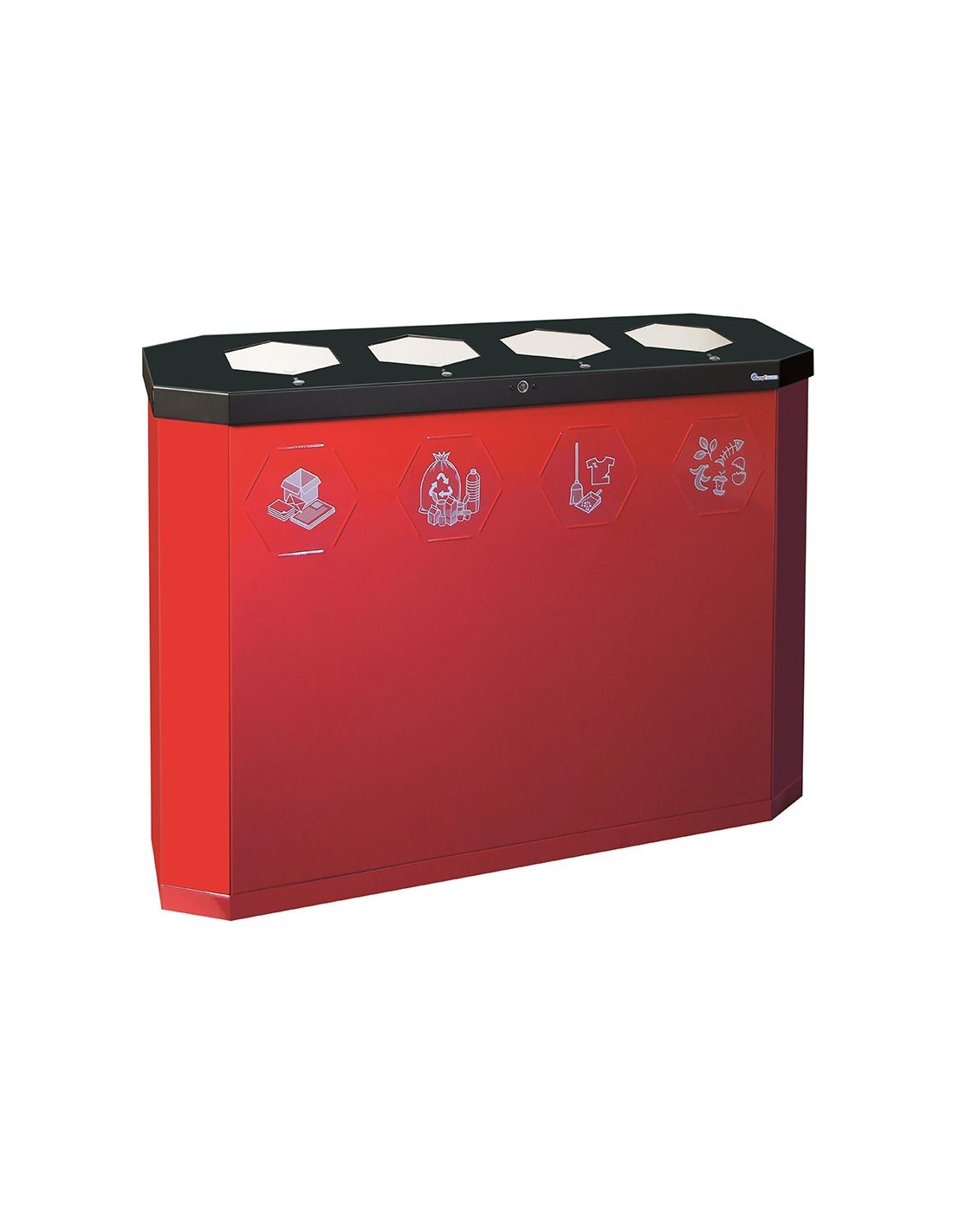 Die Sixco-4fach-Recycle-Station »Structure« bietet eine nachhaltige Lösung für die Abfalltrennung im öffentlichen Raum. Hergestellt aus verzinktem Qualitätsstahl und mit einer hochwertigen Pulverbeschichtung versehen, überzeugt sie nicht nur durch ihre Robustheit, sondern auch durch ihre ansprechende Optik.