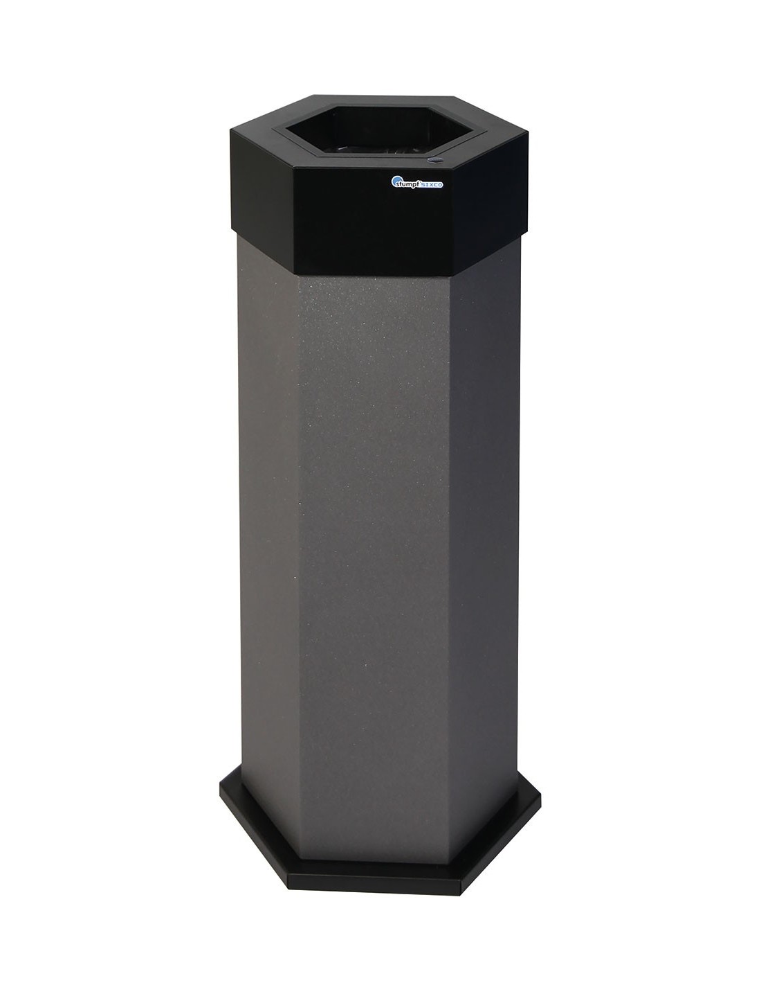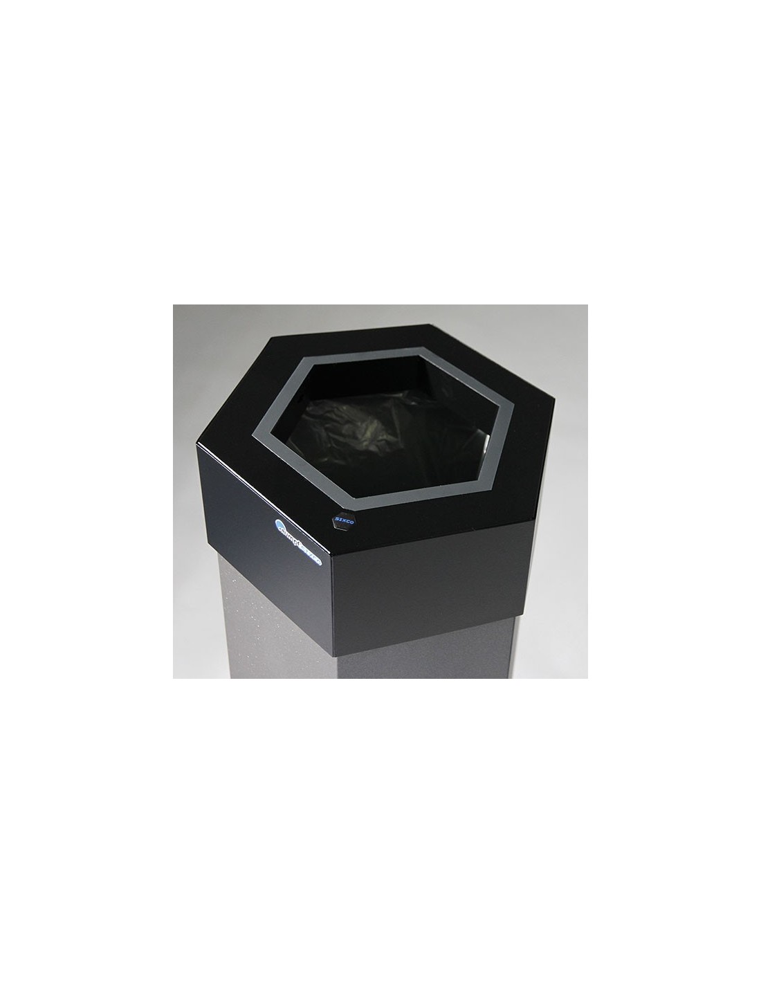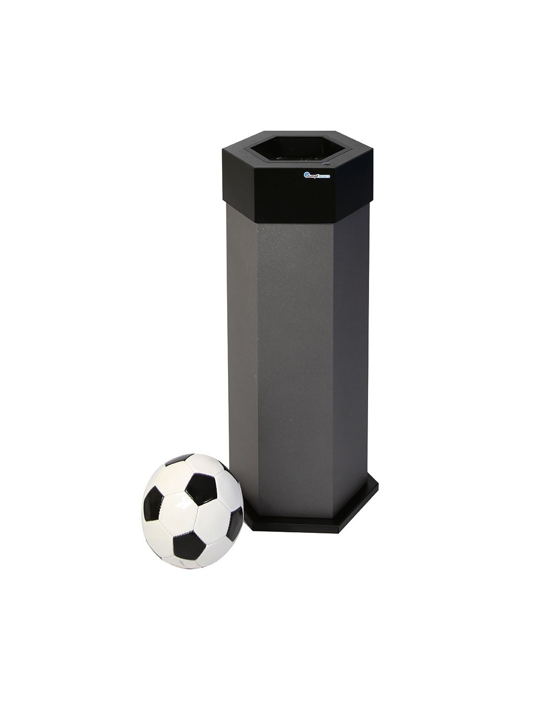 Der Sixco 1 »smart« besticht durch seine sechseckige Wabenform, die eine gelungene Verbindung von Klassik und Moderne darstellt. Das abnehmbare Kopfelement erleichtert das Einbringen von Abfalltüten, die mithilfe des Gummizugs fixiert werden können. Die extra langen Seitenteile des Behälterkopfes sorgen dafür, dass die Ränder der Abfalltüten vollständig verdeckt werden. Gefertigt aus verzinktem Qualitätsstahl und mit einer schützenden Pulverbeschichtung versehen, überzeugt der Sixco 1 »smart« nicht nur durch sein Design, sondern auch durch seine Robustheit und Langlebigkeit.