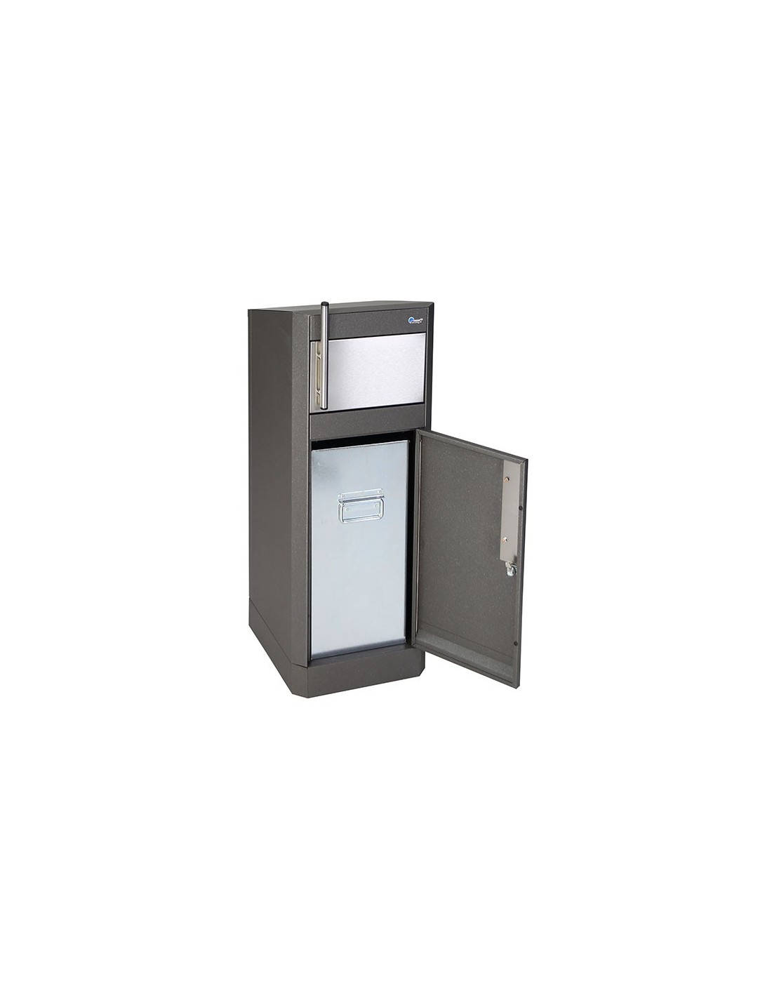 Dieser Universal-Gebäudesammler eignet sich perfekt für Flure, Korridore, Dielen, Eingangsbereiche und mehr. Er verfügt über einen gedämpften Edelstahl-Hygiene-Einwurf und einen verzinkten Innenbehälter mit einem Fassungsvermögen von 25 Litern. Die Flügeltüre ist mit auswechselbaren Farbstreifen zur Kennzeichnung der einzuwerfenden Abfallart ausgestattet und kann mittels Dreikantverriegelung verschlossen werden (inklusive Schlüssel).