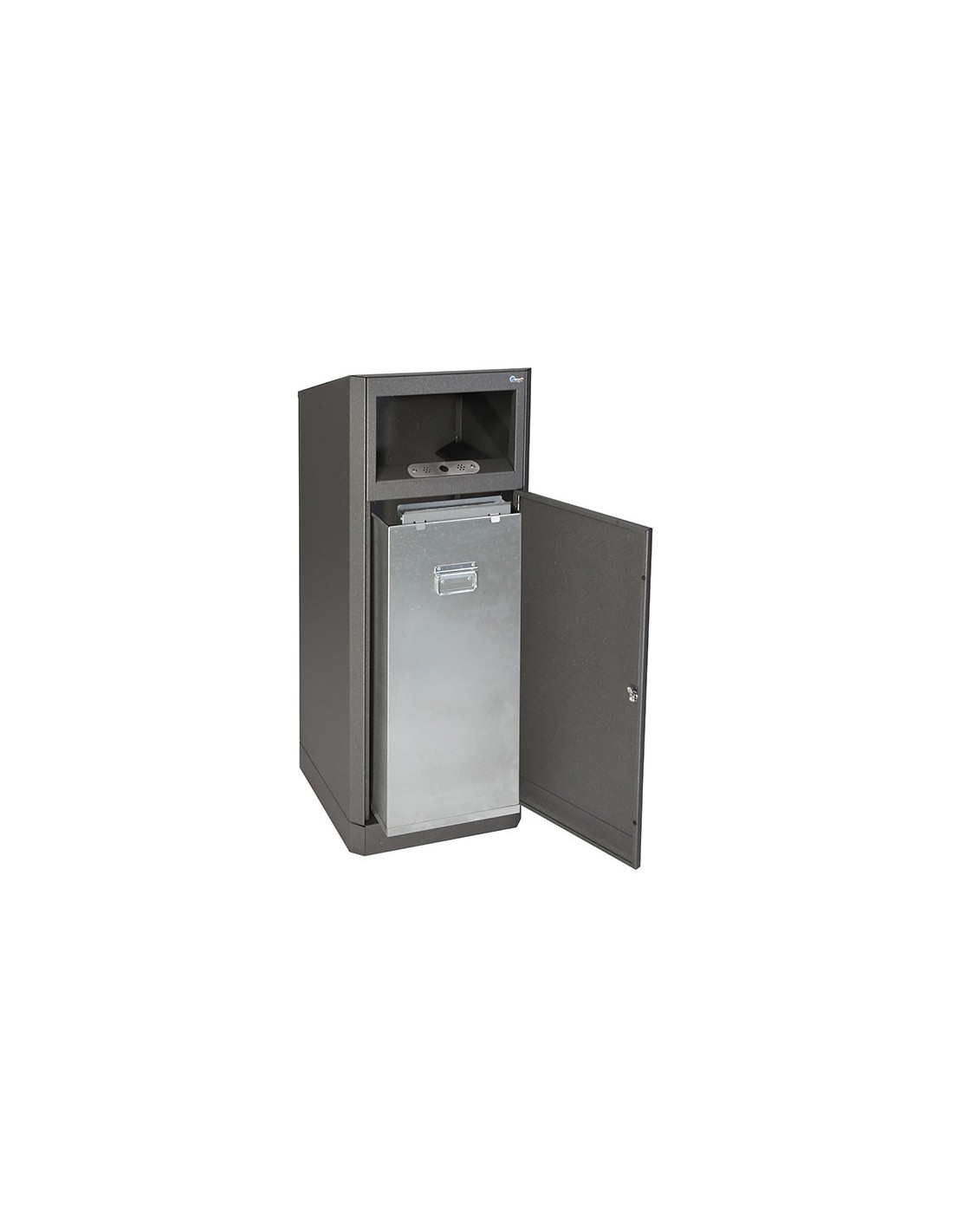 Zu den wichtigen technischen Merkmalen zählen der verzinkte Inneneinsatz mit einem Fassungsvermögen von 80 Litern, die verschliessbare Flügeltüre mit Dreikantverriegelung und die Niveauregulierung durch Stellfüsse. Der Abfallsammler erfüllt zudem die Anforderungen der Brandschutzklasse A1 gemäss DIN 4102 und DIN EN 13501-1.