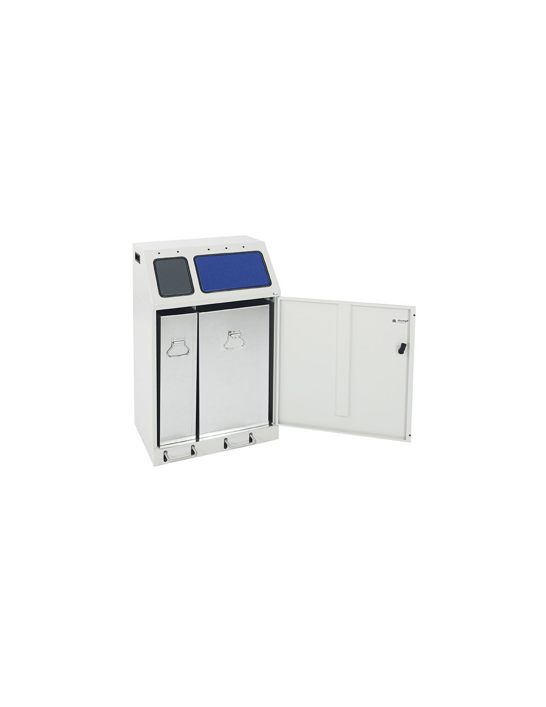 Dieser Kompaktsammler aus verzinktem Stahlblech und hochwertiger Pulverbeschichtung ist die ideale Lösung für die Abfalltrennung in verschiedenen Umgebungen. Mit zwei selbstschliessenden Einwurfklappen in den Farben anthrazit und blau ist er nicht nur funktional, sondern auch optisch ansprechend.