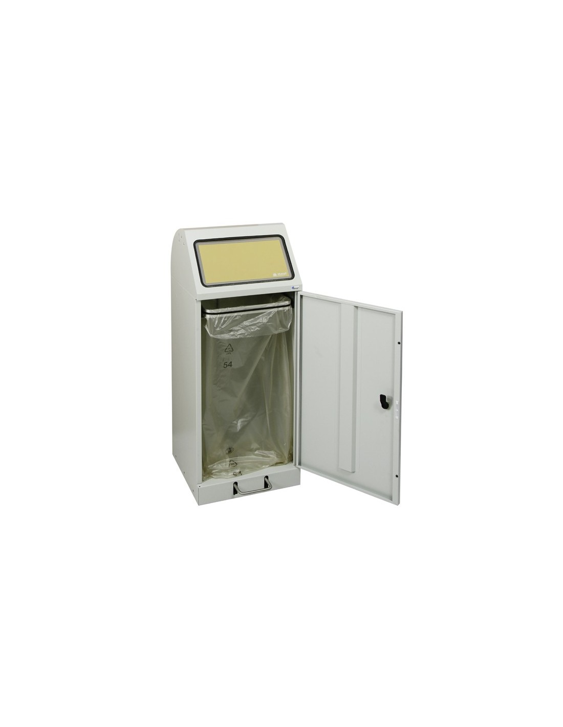 Dieser Abfallbehälter Flex M ist aus hochwertigem Qualitätsstahlblech gefertigt und verfügt über ein Fassungsvermögen von 70 Litern. Die integrierte Tütenhalterung mit Elast-Spannband sorgt für einen schnellen und einfachen Wechsel der Abfalltüten. Der Fusshebel ermöglicht ein bequemes Öffnen der Einwurfklappe, die durch eine Flügeltüre mit Vierkantschloss verschlossen ist.