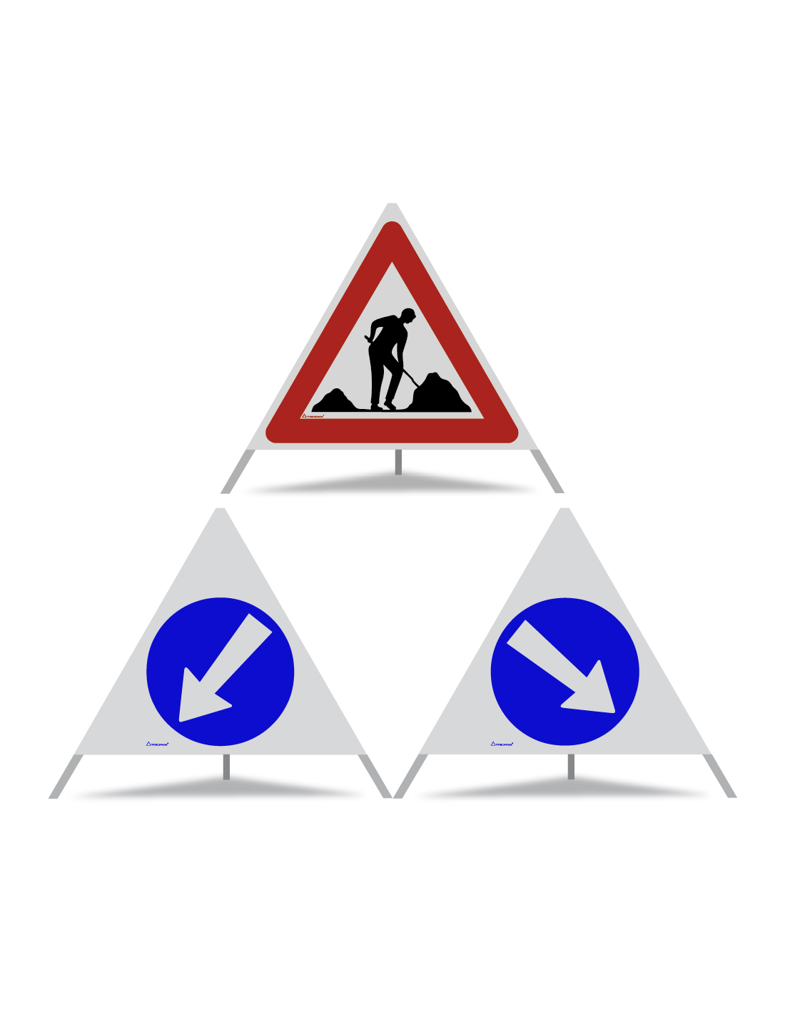 TRIOPAN Faltsignal 90 R2 Retro-reflektierend Kombi mit Etui (Baustelle - Links umfahren - Rechts umfahren)