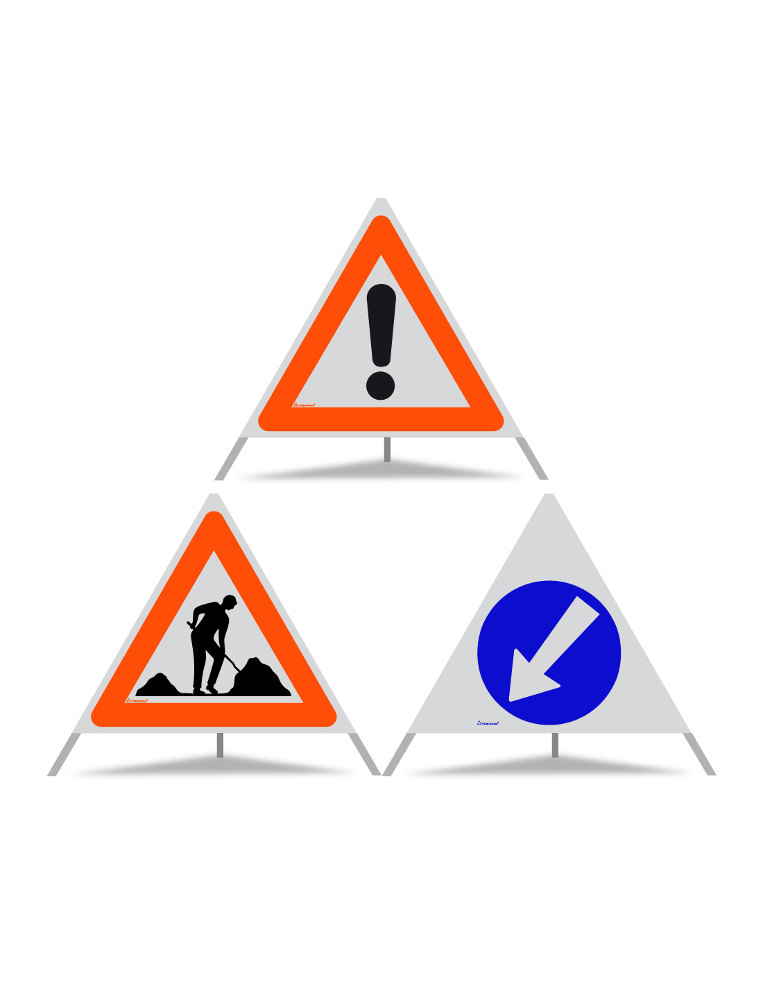TRIOPAN Panneau pliable 90 Combo R1 Réfléchissant avec étui (Autres dangers - Chantier - Contourner à gauche)