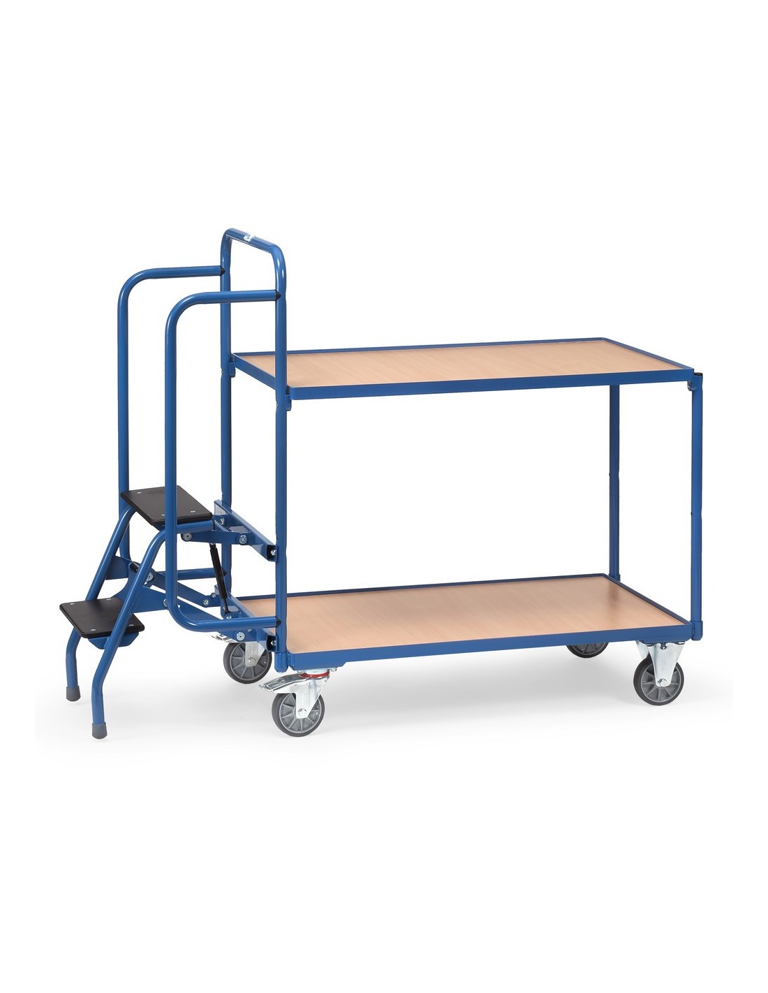 Chariot de préparation Fetra avec marches, 2 plateaux, 1000 x 600 mm