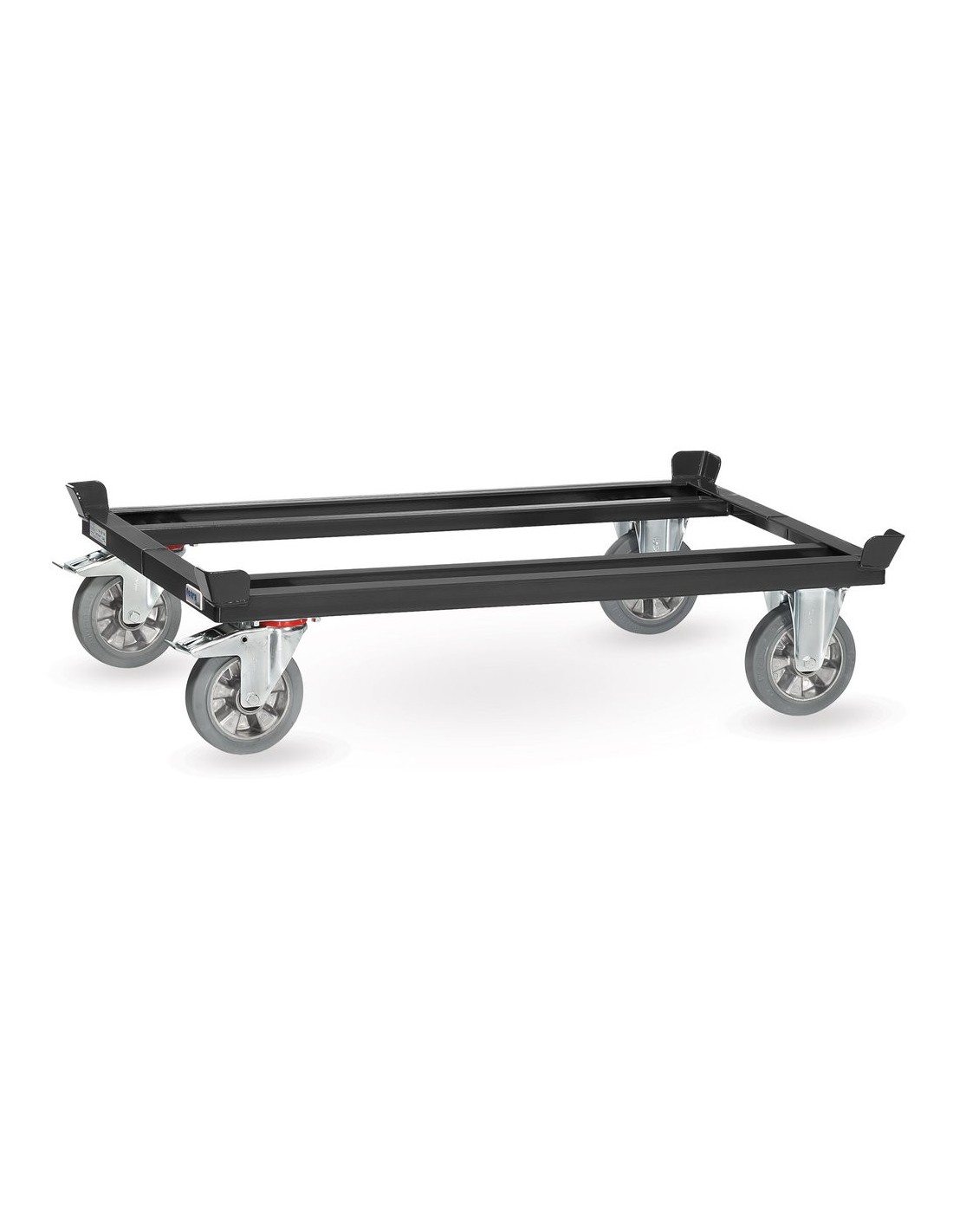 Ce chariot est idéal pour le transport de palettes plates et de caisses grillagées. La construction robuste en acier profilé soudé avec 4 coins de protection assure stabilité et durabilité. Revêtu de poudre RAL7016 gris anthracite, il offre non seulement un aspect attrayant, mais aussi une protection contre la corrosion.