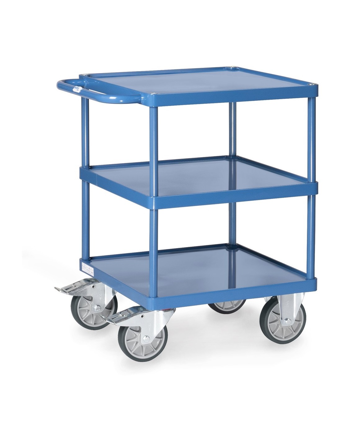 Chariot de table Fetra, plateforme carrée, avec 3 bacs en tôle d'acier avec rebord de 10 mm de haut