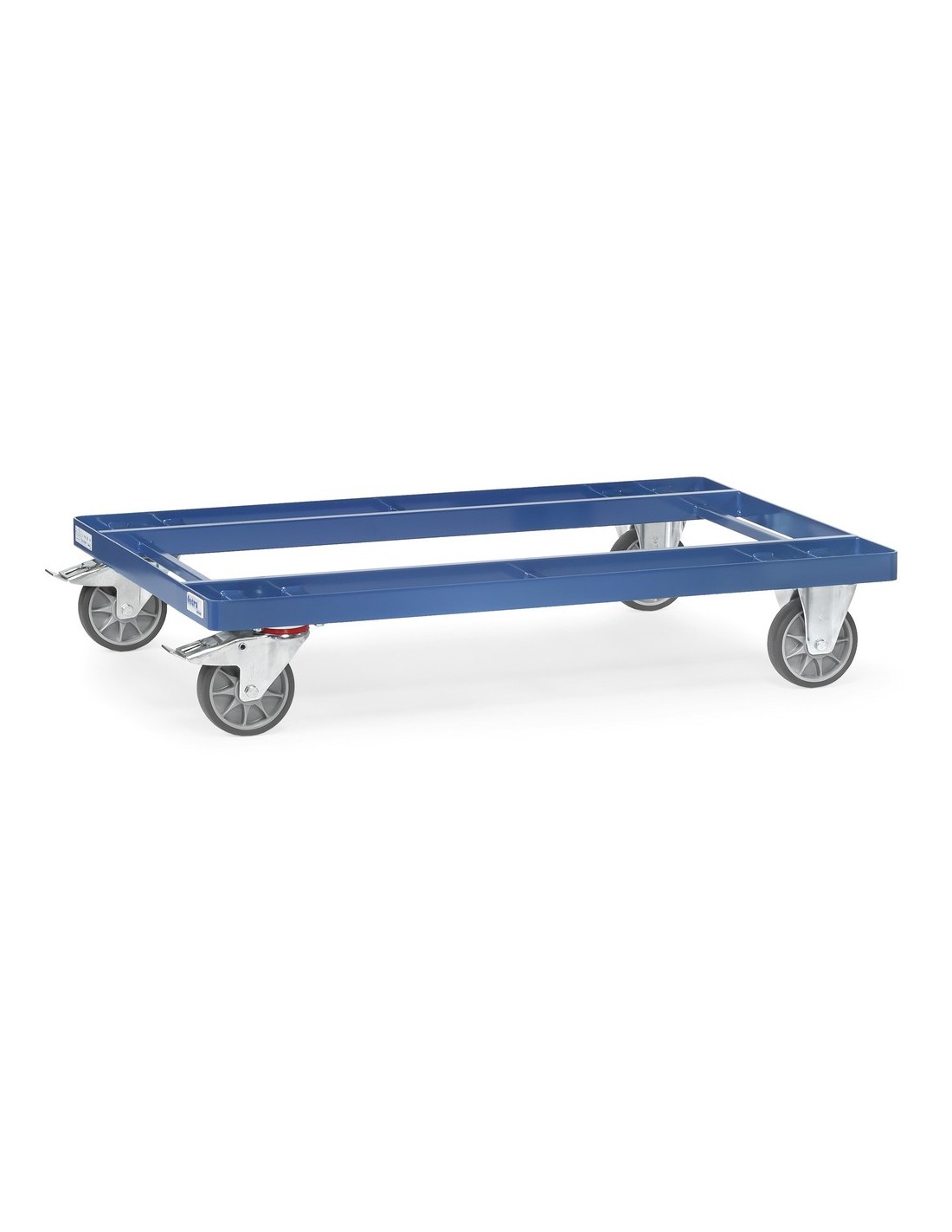Ce chariot de manutention pour palettes léger de Fetra est idéal pour le transport de palettes plates et de caisses grillagées. Avec un cadre en acier plat, des traverses et un revêtement en poudre bleue selon la norme RAL 5007, il est non seulement stable, mais aussi esthétiquement attrayant.