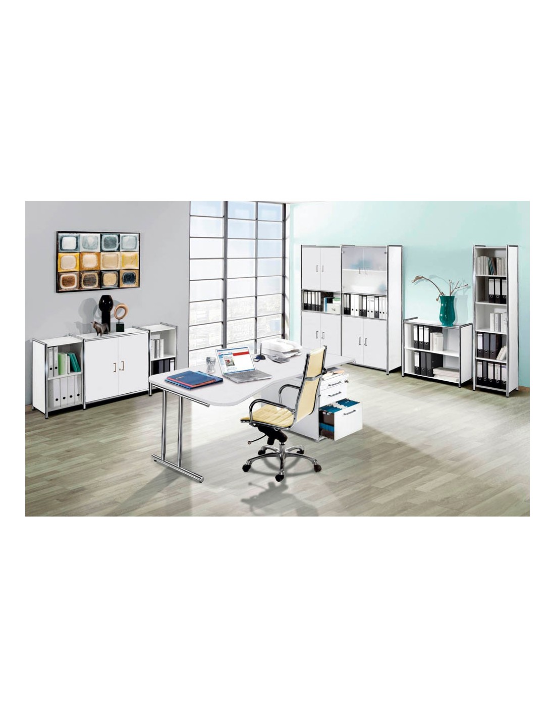 Son cadre en bois robuste garantit durabilité et solidité. Sa surface en mélamine est résistante aux rayures et facile à nettoyer – idéale pour un usage quotidien au bureau.