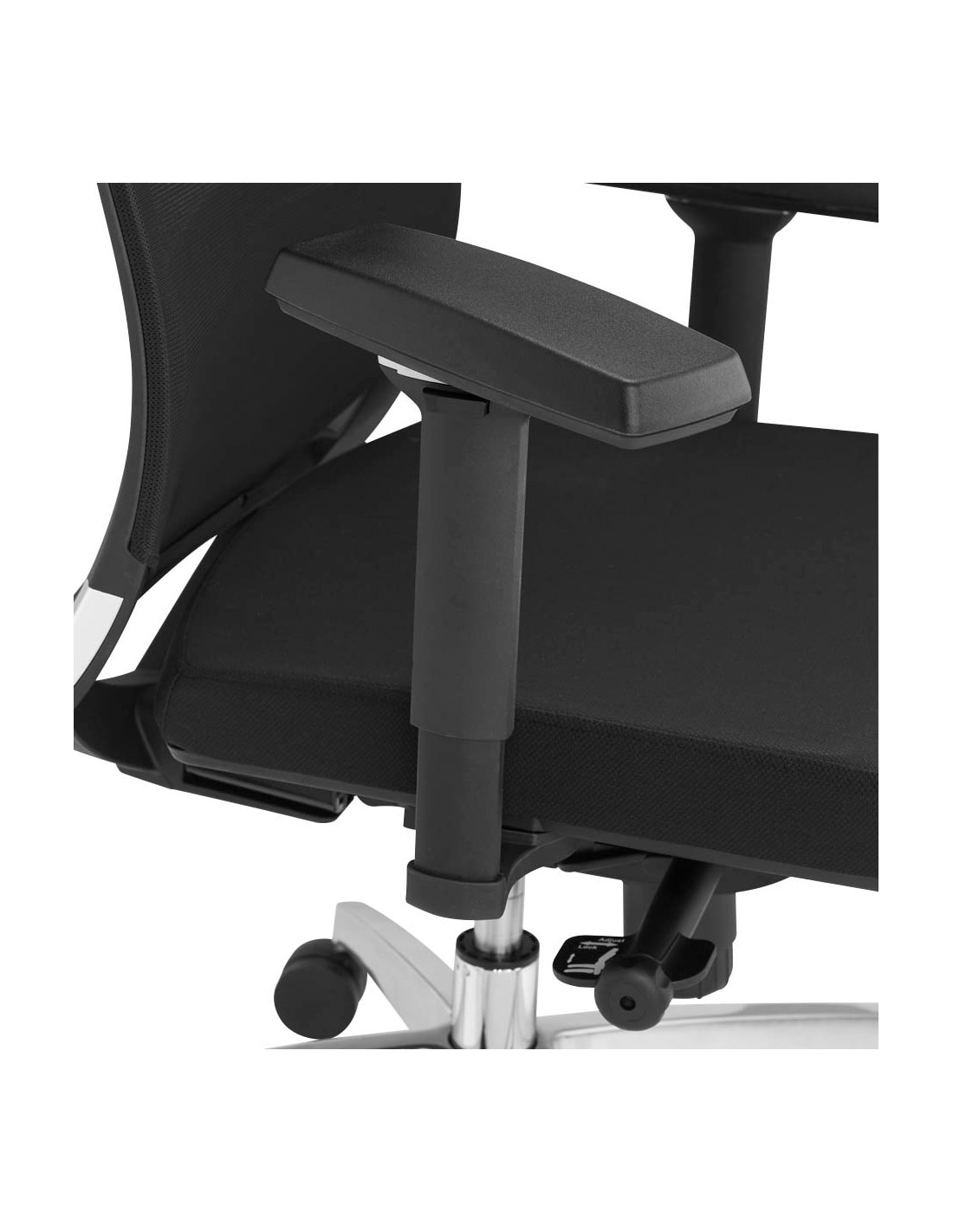 Le dossier en maille respirante permet de travailler en toute concentration, même en été, grâce à sa grande aération. L'inclinaison réglable du dossier vous assure de toujours trouver une position confortable. Les accoudoirs contribuent également à une posture assise saine en soulageant les tensions au niveau des bras, de la nuque et des épaules. Ils sont réglables en hauteur, en rotation et en profondeur . Le fauteuil de bureau Mayer myOPTIMAX 2486, en tissu noir avec une structure en aluminium, est également équipé d'un appui-tête pour un confort accru et une meilleure détente musculaire. Vous avez de la moquette ? Parfait, car les roulettes jumelées sont idéales pour ce type de revêtement de sol.