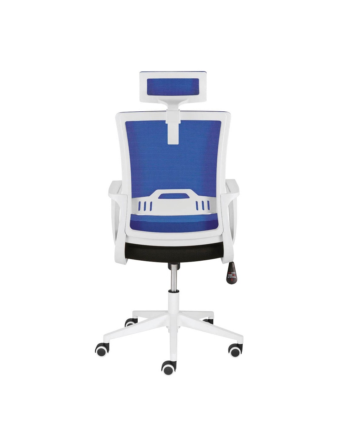 Le dossier est en maille . Le soutien lombaire soutient le bas du dos et vous aide à maintenir une posture assise saine. Pour trouver toujours la position idéale, vous pouvez ajuster l'inclinaison du dossier selon vos besoins. Reposez vos bras sur les accoudoirs et prévenez ainsi les tensions dans la nuque et les épaules. L' appui-tête contribue également à soulager les tensions musculaires lorsque vous vous penchez en arrière et améliore votre confort. Le fauteuil de bureau Mayer mySTUDIO, référence 2377 502, en tissu bleu et structure blanche, convient parfaitement aux sols durs comme aux moquettes .
