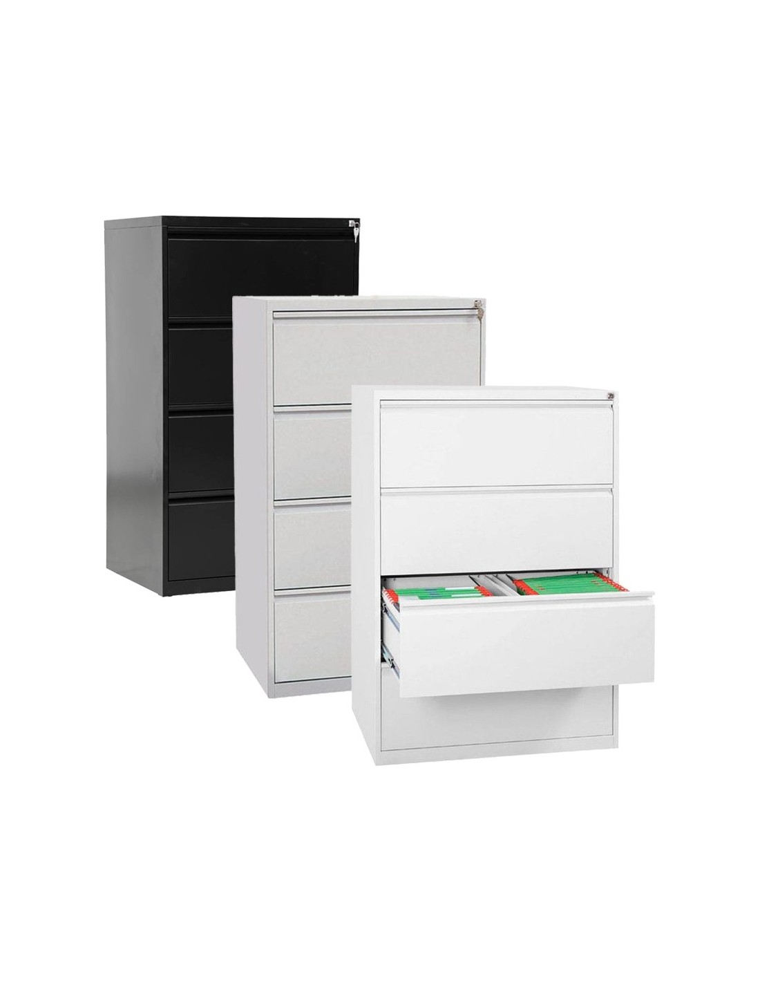 Questo prodotto dispone di 4 cassetti a vostra disposizione per l'archiviazione. Per evitare che l'elemento mobile si inclini in avanti durante l'estrazione dei cassetti a causa del proprio peso, l'apertura simultanea di due cassetti e l'estrazione eccessiva sono prevenute grazie al blocco di estrazione - perché la sicurezza è importante. I cassetti scorrono in modo sicuro ed agevole grazie alle guide telescopiche a sfera, sono estraibili fino al 100% e offrono un utilizzo dello spazio confortevole. I cassetti per documenti e archiviazione sono dotati di doppia fila. I telai appendiabiti fissi con fondo a vasca chiusa sono molto pratici nel caso qualcosa cada dal fascicolo o dalla cartella sospesa. Inoltre, c'è la seguente particolarità: cornici per etichette adesive (sono in un cassetto). Riconoscere immediatamente cosa c'è all'interno - per questo sono pensate le pratiche finestre di etichettatura.