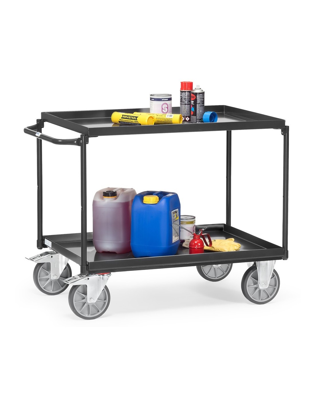 Il carrello da tavolo Fetra è ideale per il trasporto di merci e materiali in magazzini, officine, uffici e altri ambienti di lavoro. Grazie alle ampie superfici di appoggio e alla elevata capacità di carico, rappresenta un supporto pratico nella routine lavorativa quotidiana.