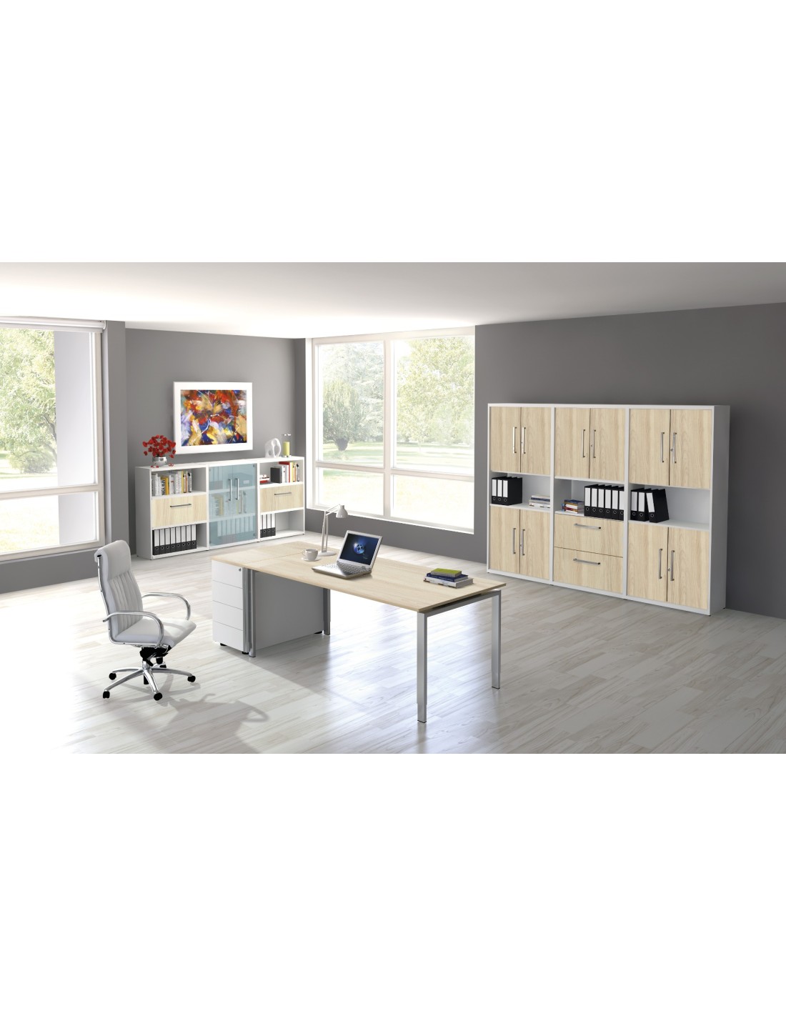 Programma di mobili per ufficio moderni per un lavoro ergonomico