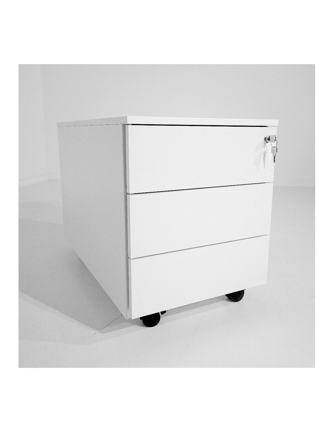 Il mobile portaoggetti è dotato di tre sezioni estraibili con un totale di tre cassetti . Questi offrono ampio spazio per documenti e materiale per ufficio. I cassetti sono realizzati in plastica e possono essere estratti fino all'80% , garantendo un facile accesso al loro contenuto. Un fermo impedisce l'apertura simultanea di più cassetti, proteggendoli da ribaltamenti o danni.