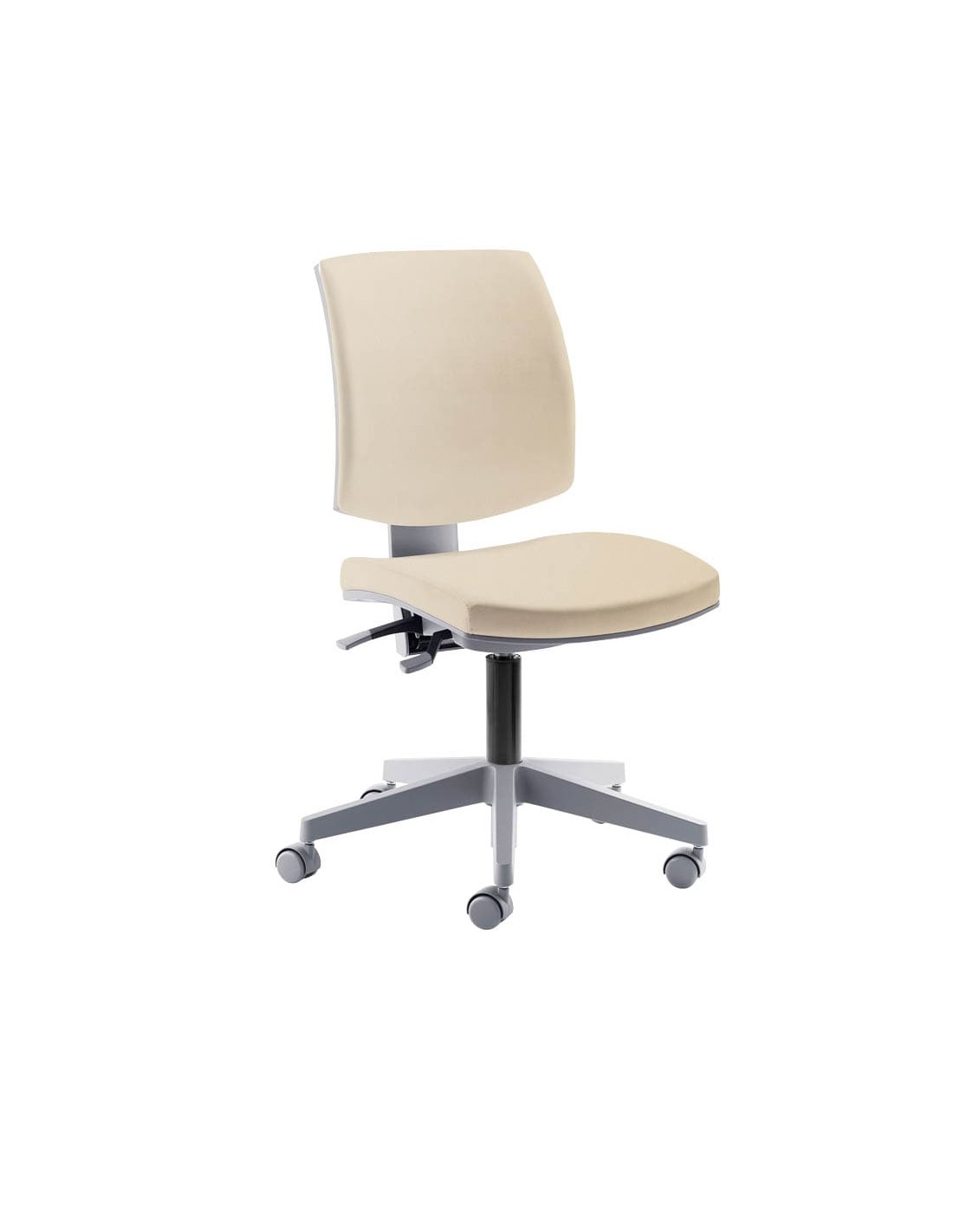 Lo schienale, realizzato in comoda imbottitura, garantisce sempre un elevato comfort di seduta . Che la stanza abbia pavimenti duri o moquette , le doppie ruote di questo modello sono ideali.
