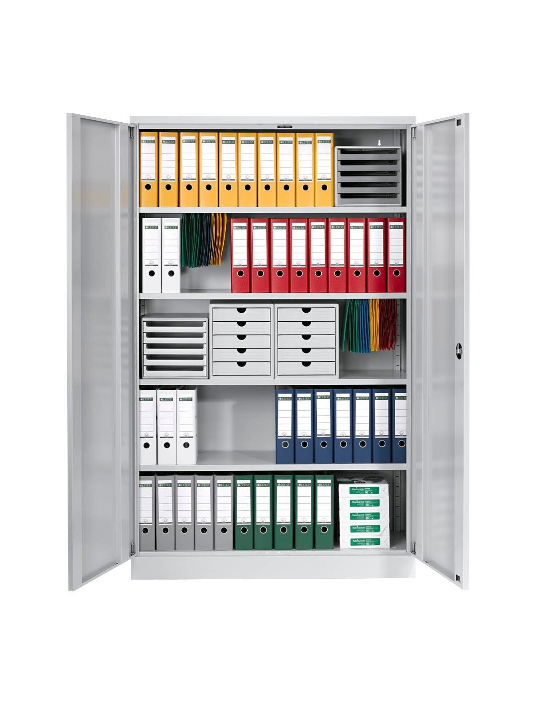 Grazie agli scaffali integrati, avrete il contenuto dell'armadio ben posizionato e visibile a colpo d'occhio. Con questo mobile sarete ben equipaggiati con 4 ripiani. La capacità di carico di questi ripiani è di 60,0 kg ciascuno. Volete sapere quanti file di cartelle potete mettere qui dentro? Qui avrete spazio per 5 file di cartelle.
