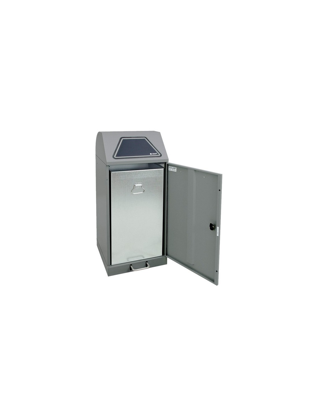 Il sistema di separazione dei rifiuti Modulo-Vario 120 di Stumpf è realizzato in lamiera d'acciaio di alta qualità e presenta una resistente verniciatura a polvere con struttura grigio alluminio. Il contenitore interno zincato garantisce una raccolta ottimale dei rifiuti e la capacità è di 120 litri.
